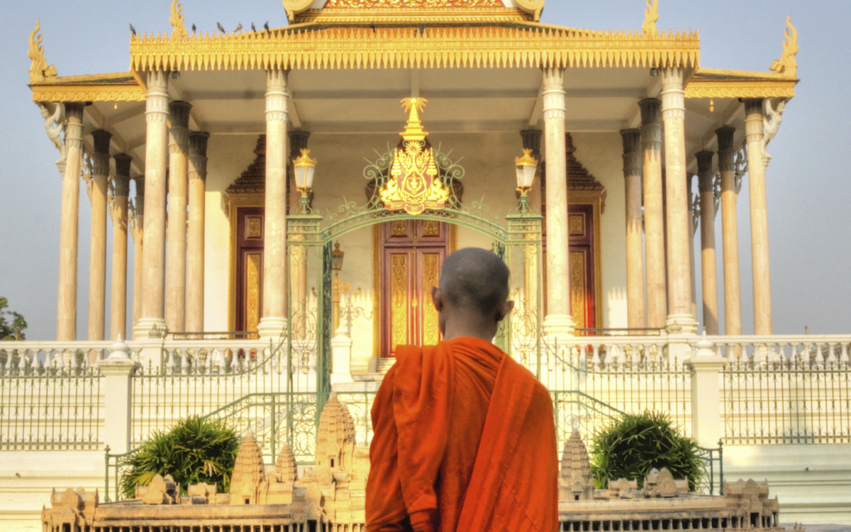 Continuation vers Oknha Tei, une île magnifique sur le Mékong. Visite de cette communauté agricole où la canne à sucre, le maïs, le manioc et les bananiers occupent la majeure partie des terres cultivables. Tout d'abord, vous vous rendrez à la pagode locale, Wat Koh Oknha Tei, où vous recevrez une bénédiction de l'eau. De nombreux Cambodgiens font l'expérience du mode de vie des moines lorsqu'ils sont enfants, car l'ordre monastique est relativement flexible : il n'est pas nécessaire de s'engager à vie. La salle de réunion est colorée et décorée de scènes de la vie passée du Bouddha, afin que les fidèles puissent comprendre ces histoires morales. Vous découvrirez le processus de fabrication de la soie. Navigation vers Opopel. Visite du charmant village rural d'Opopel avec ses maisons sur pilotis et ses vaches Brahim qui paissent à l'ombre des bananiers. Dans ce lieu fascinant, le temps s'arrête tandis que vous découvrez de près le rythme de la vie rurale. Visitez la maison d'une famille locale qui vous parlera de son mode de vie et rencontrez les enfants de l'école locale dans leur classe pour avoir un aperçu d'une journée d'école cambodgienne typique. Une promenade tranquille dans le village vous permettra de prendre des photos. Retour au bateau.